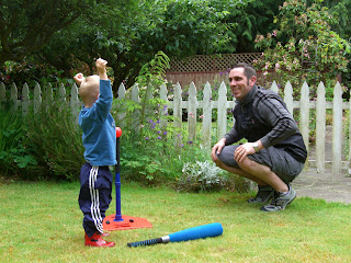 Kev giving Adam his first (of many, I'm sure!) lesson on holding the bat & hitting the ball...